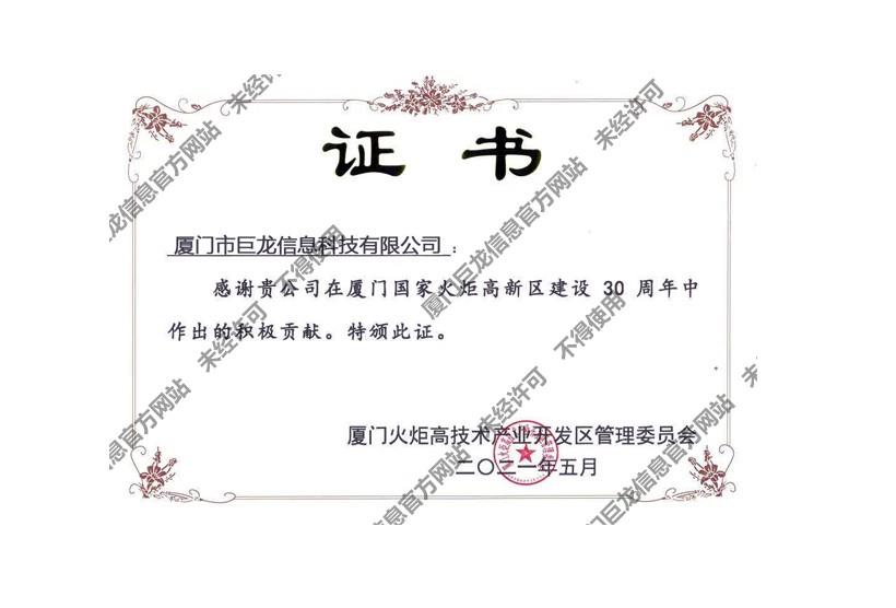 火炬高新區(qū)“突出貢獻(xiàn)企業(yè)”證書
