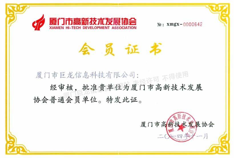 高新技術(shù)發(fā)展協(xié)會(huì)會(huì)員證書