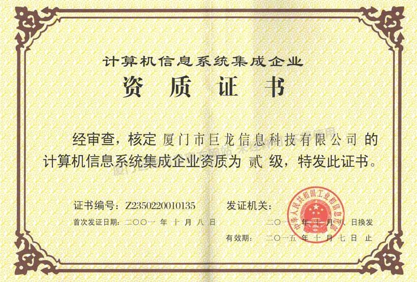 計(jì)算機(jī)信息系統(tǒng)集成二級(jí)資質(zhì)證書(shū)