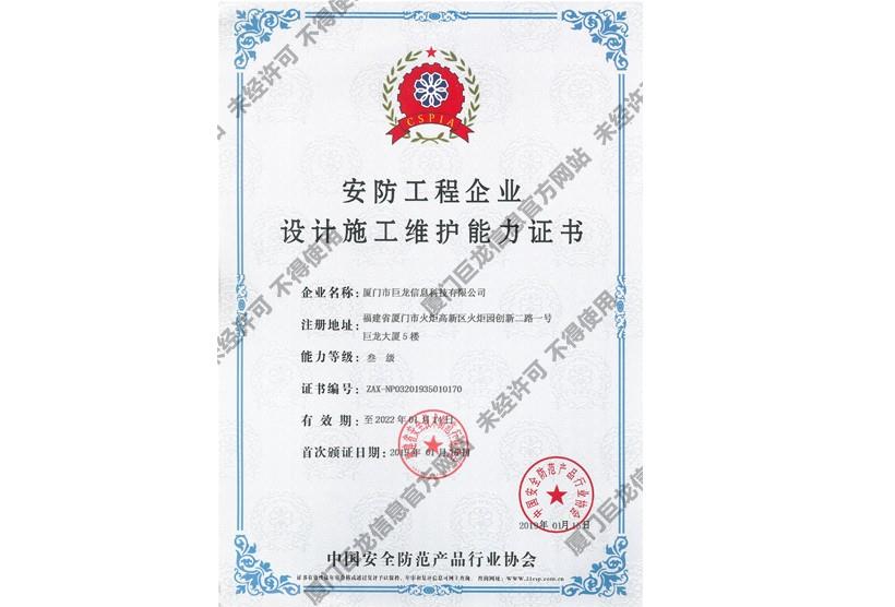 安防工程企業(yè)設(shè)計(jì)施工維護(hù)能力證書(shū)