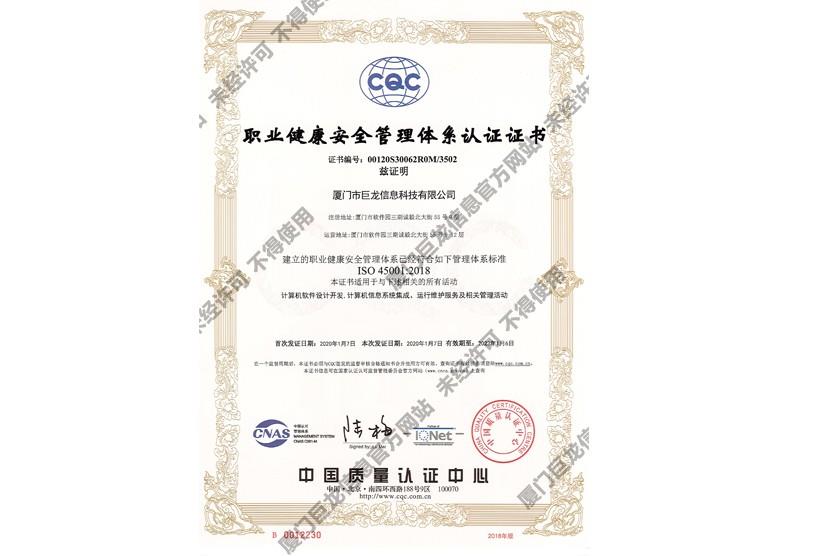 職業(yè)健康安全管理體系認(rèn)證證書(shū)