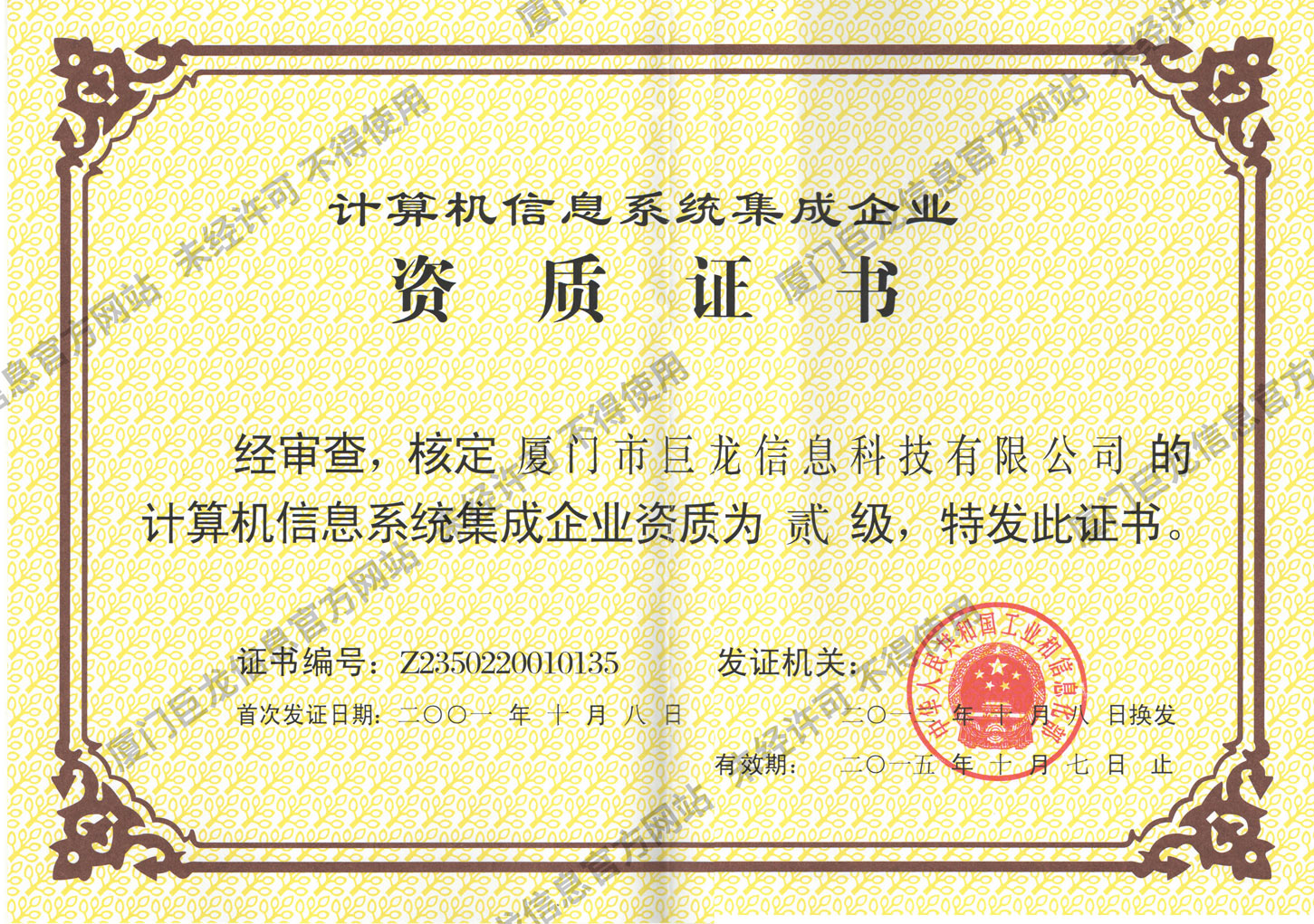 計算機信息系統(tǒng)集成二級資質(zhì)證書