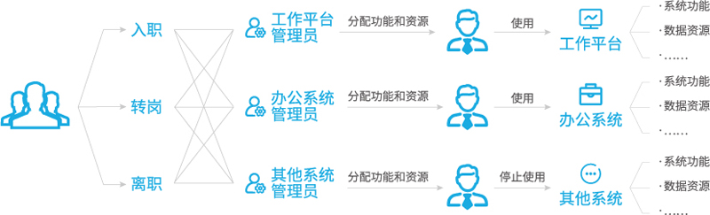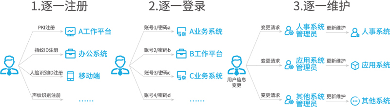 授權(quán)分配工作量大 系統(tǒng)眾多,又面臨著人員調(diào)動、崗位變化等,需要管理員逐個進入每一套系統(tǒng)去設(shè)置權(quán)限,帶來了權(quán)限管理的問題。 |