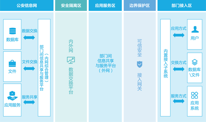 立足于公安部門,解決公安部門與其他外部單位之間的跨部門、跨網(wǎng)絡(luò)的數(shù)據(jù)交換與信息共享需求。平臺以 數(shù)據(jù)資源為基礎(chǔ),依托基礎(chǔ)網(wǎng)絡(luò)設(shè)施,建設(shè)一套“技術(shù)先進(jìn)、安全可靠、切實可行、管控方便”的部門間信息共享與服務(wù)平臺,在確保業(yè)務(wù)專網(wǎng)數(shù)據(jù)的保密性、獨立性和完整性的同時,實現(xiàn)信息資源安全可控的交換共享,打破部門間數(shù)據(jù)孤島、實現(xiàn)資源互聯(lián)互通,適應(yīng)大數(shù)據(jù)時代的數(shù)據(jù)共享交換。