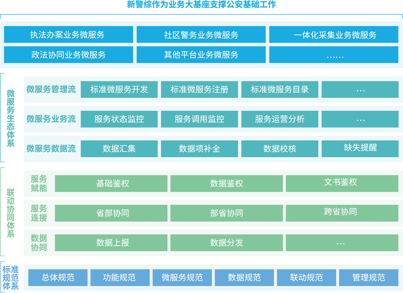 遵循大數(shù)據(jù)智能化總體規(guī)劃和公安部關(guān)于新警綜總體建設(shè)要求,以各省市警務(wù)云平臺(tái)和大數(shù)據(jù)平臺(tái)為底 座,打造統(tǒng)一架構(gòu)、統(tǒng)一協(xié)同、統(tǒng)一服務(wù)、統(tǒng)一數(shù)據(jù)的“業(yè)務(wù)大基座”,支撐執(zhí)法辦案、社區(qū)警務(wù)、一體化采集、政法協(xié)同等公安基礎(chǔ)業(yè)務(wù),促進(jìn)警綜業(yè)務(wù)應(yīng)用智能化升級(jí),更好賦能基層民警。