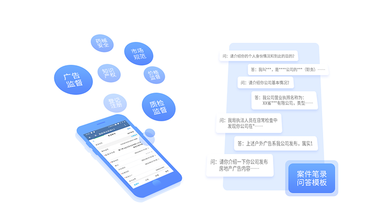 針對違法事實清楚、證據(jù)確鑿,且情節(jié)簡單、處罰輕微的常見違法事項預(yù)設(shè)100+常見案件筆錄問答模板?,F(xiàn)場調(diào)查階段可通過預(yù)設(shè)模板快速生成筆錄,解決問話要點錯漏、重復(fù)等問題,節(jié)省工作量又保障筆錄證據(jù)內(nèi)容完整規(guī)范。