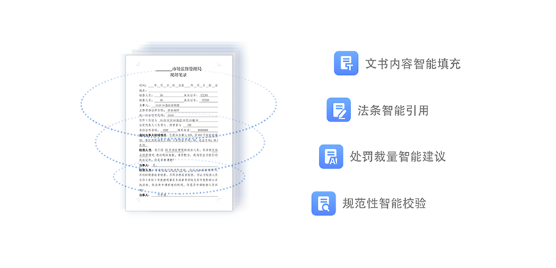 在現(xiàn)場辦理中,系統(tǒng)會自動批量生成對應(yīng)的法律文書,包括文書內(nèi)容智能填充,法條智能引用、處罰裁量智能建議和規(guī)范性智能校驗。減少辦案人員補(bǔ)錄文書的工作量,文書自動生成現(xiàn)場打印,不同辦案人員達(dá)到同樣辦案的效果,有效提高執(zhí)法質(zhì)效。