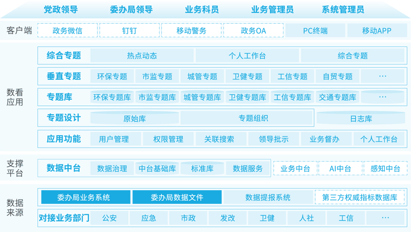 我們服務(wù)的客戶跨越新一線城市到到四線城市、擁有數(shù)據(jù)駕駛艙指標(biāo)體系構(gòu)建需求的各級(jí)單位,已服務(wù)財(cái)政局、市監(jiān)局、統(tǒng)計(jì)局、公安局、自然資源局、稅務(wù)局、供電局、林業(yè)局、海關(guān)局、金融局、商務(wù)局等超過30個(gè),已建設(shè)超過200個(gè)主題板塊,沉淀超過1000個(gè)核心指標(biāo)。同時(shí)持續(xù)對(duì)采集的實(shí)時(shí)數(shù)據(jù)進(jìn)行多維分析,深挖高價(jià)值數(shù)據(jù)指標(biāo),洞悉指標(biāo)間關(guān)聯(lián)關(guān)系,幫助客戶降低行政管理成本、提高科學(xué)化決策水平。