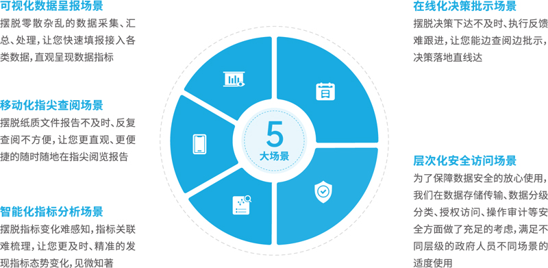 通過詳盡的指標(biāo)體系,實(shí)時(shí)反映政府的運(yùn)行狀態(tài),將采集的數(shù)據(jù)形象化、直觀化、具體化。
