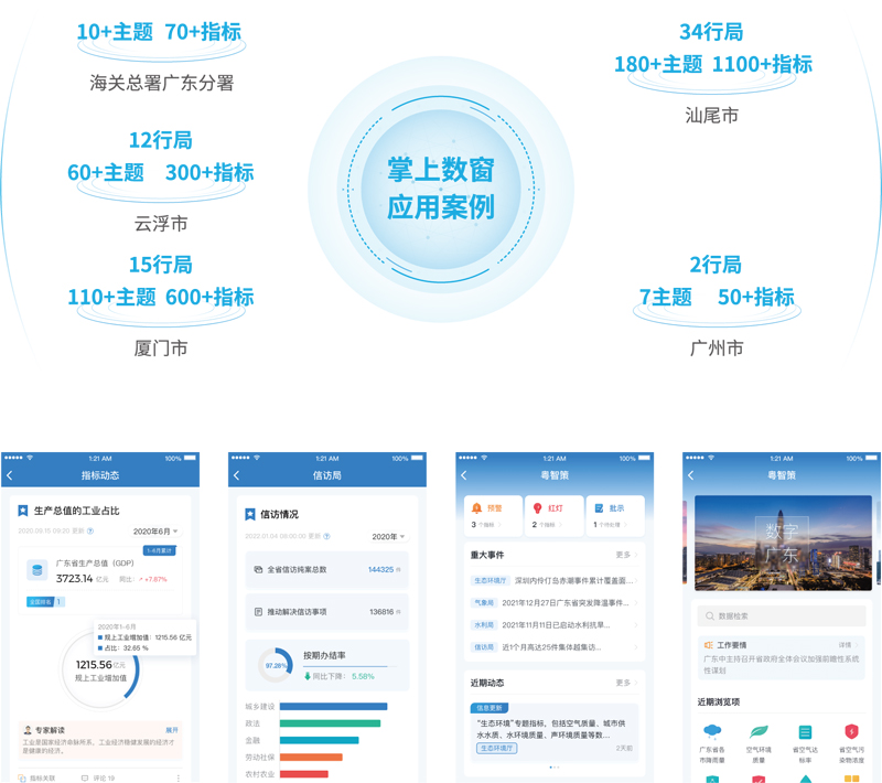 一屏通覽指尖查閱 掌上數(shù)窗充分利用現(xiàn)代信息技術(shù),結(jié)合數(shù)據(jù)可視化,生成有邏輯、隨時(shí)看、全時(shí)段溝通的“口袋 報(bào)表”,提高政務(wù)管理辦公效率。 |