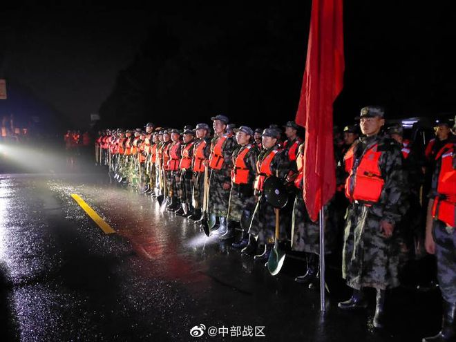 2021年7月23日,河南省焦作市修武縣內(nèi)沙河水位迅速上漲,第83集團軍某炮兵旅官兵火速馳援。來源:中部戰(zhàn)區(qū)官方微博