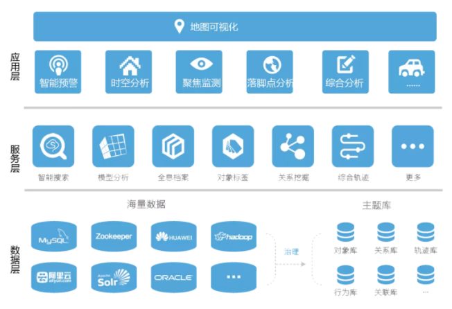 系統(tǒng)以執(zhí)法部門現(xiàn)有計(jì)算、存儲(chǔ)、網(wǎng)絡(luò)等資源為設(shè)施基礎(chǔ),以數(shù)據(jù)治理形成的資源庫(kù)、主題庫(kù)、業(yè)務(wù)庫(kù)等為數(shù)據(jù)基礎(chǔ),通過對(duì)接融合各種研判工具應(yīng)用,利用其核心關(guān)鍵計(jì)算引擎(對(duì)象化引擎、關(guān)系引擎、標(biāo)簽引擎……)作為支撐,同時(shí)關(guān)聯(lián)警用地圖等地理信息系統(tǒng),在時(shí)空范圍內(nèi)對(duì)各種關(guān)注對(duì)象(人員、車輛、案件、場(chǎng)所、地址、軌跡等)進(jìn)行研判分析,形成時(shí)空分析、智能預(yù)警和聚集監(jiān)測(cè)等綜合應(yīng)用,有效提高分析研判人員工作的高效性和準(zhǔn)確性。
